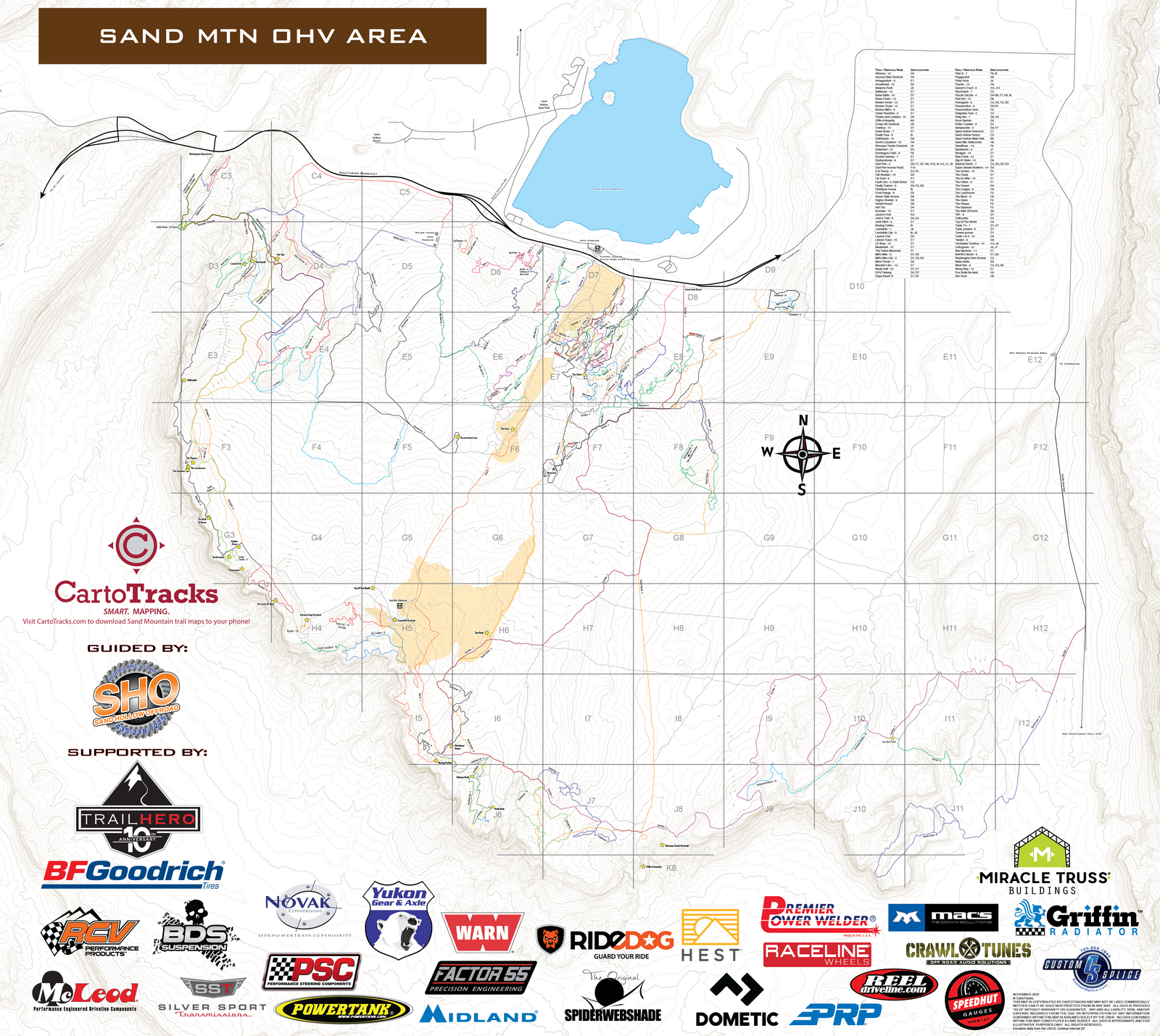 One map of all of Sand Mountain OHV Area in Hurricane, Utah. Includes all the named trails and Trail Hero Trail Breaker routes.