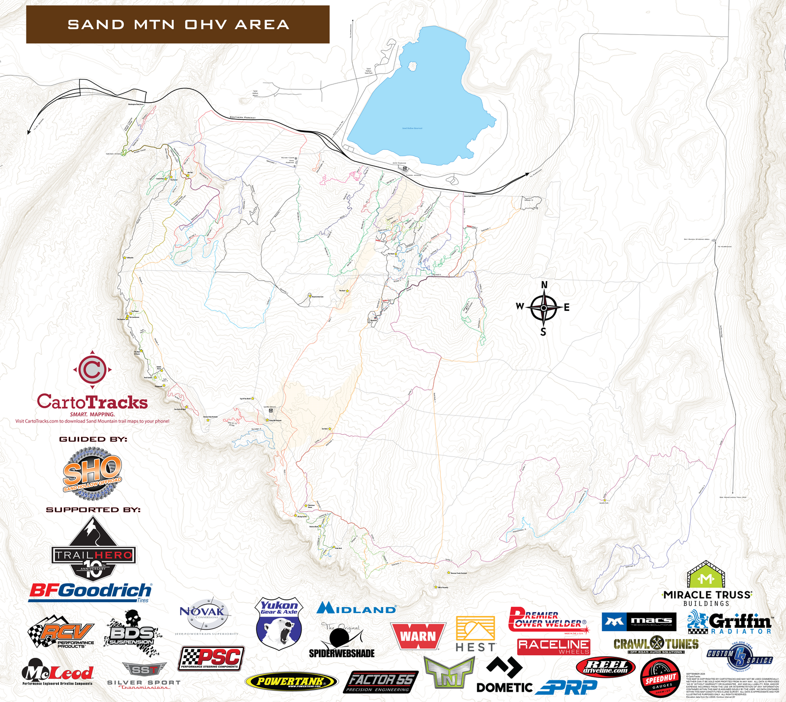 One map of all of Sand Mountain OHV Area in Hurricane, Utah. Includes all the named trails and Trail Hero Trail Breaker routes.